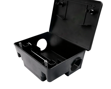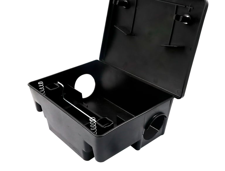 Las cajas cebaderas son recipientes seguros diseñados para colocar cebos tóxicos o trampas adhesivas para el control de plagas como ratas y ratones, protegiendo el cebo de la interperie y del alcance de niños y mascotas.