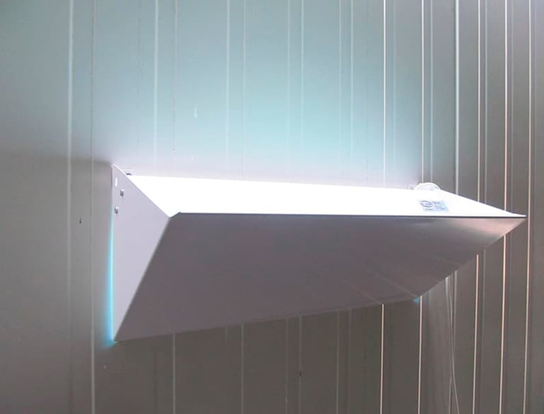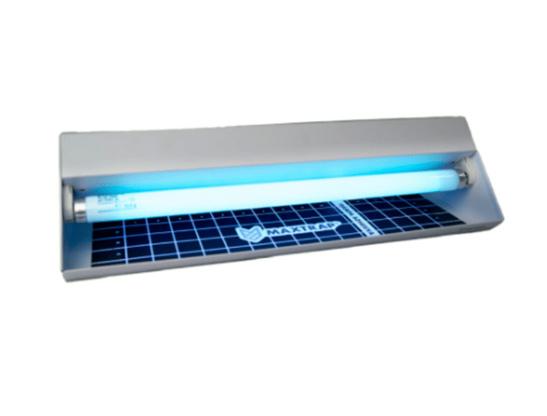 Los insectos son atraídos por la luz UV generada por los focos del equipo y al acercarse quedan atrapados en la placa adhesiva.